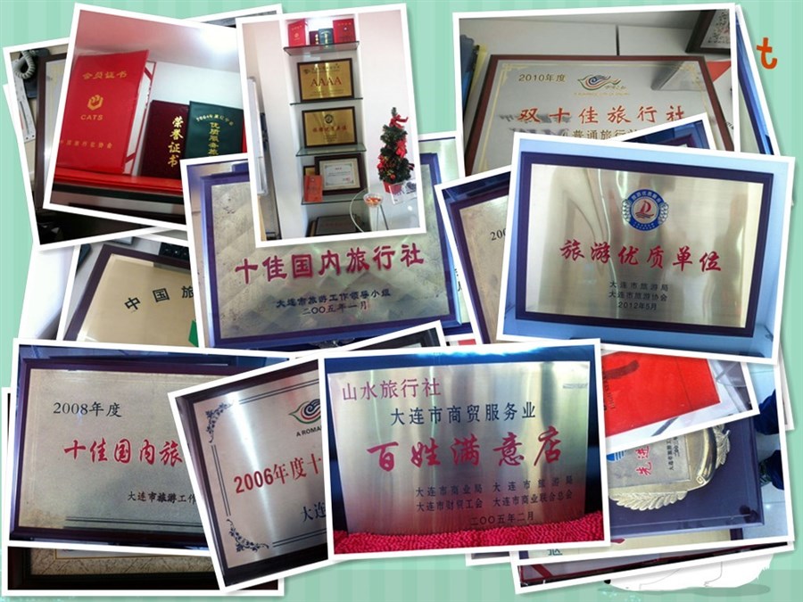 大连山水国际旅行社有限公司。从业二十余年获得众多荣誉,在业内及客户中受到广泛赞誉,更创造了二十余年服务质量“零”投诉的佳绩。