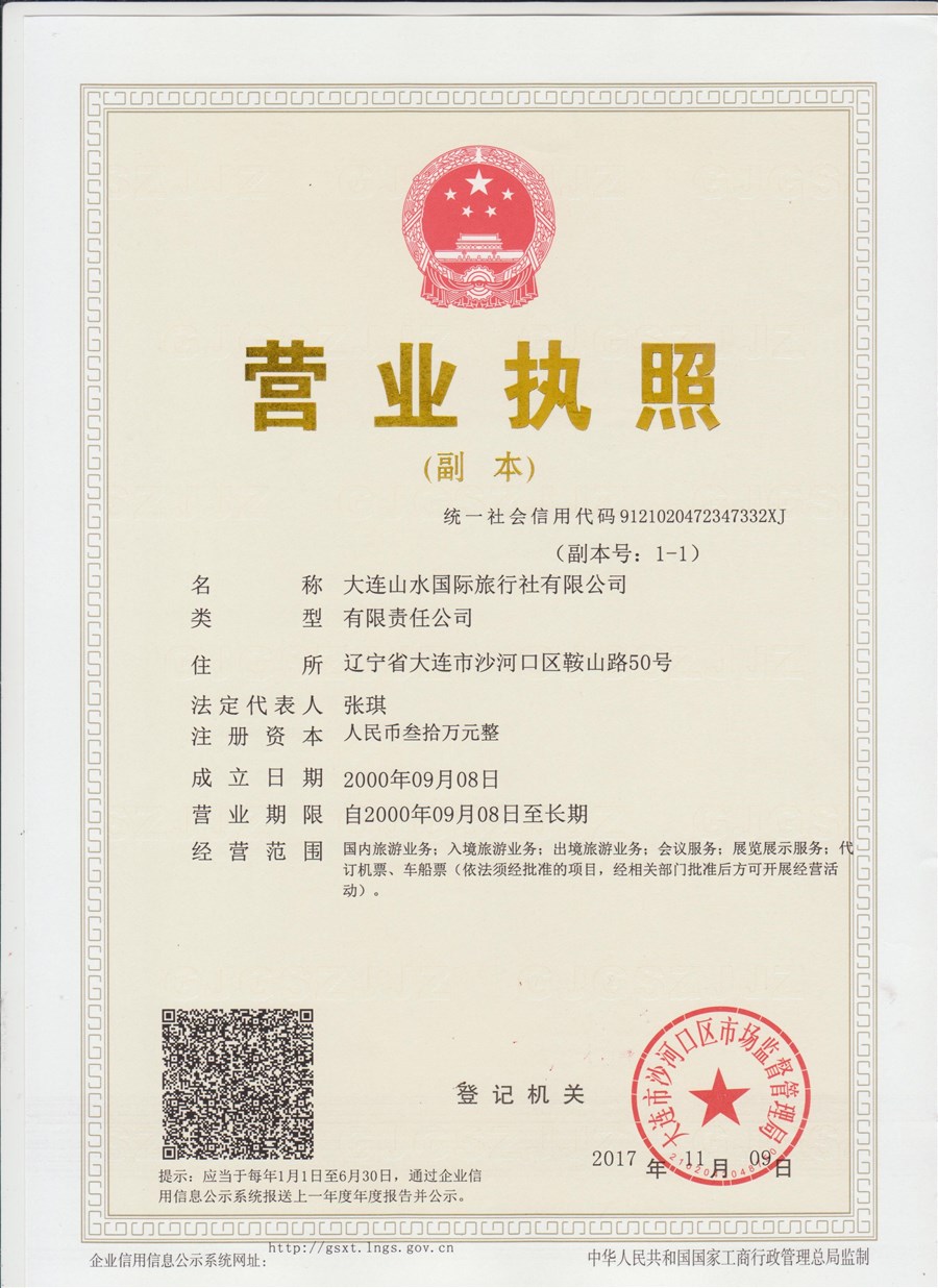 山水资质(大连山水国际旅行社有限公司)